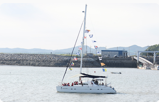 전곡항에서 출발하는 요트는 서해의 잔잔한 물살을 따라 약 30분간 운항하며 전문 선장과 함께 안전하게 운행 됩니다.